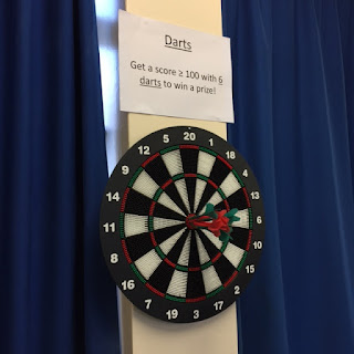 In the other room we have lots of Mathsy activities for parents and students to have a go at. The first of which was the Darts challenge. Given 6 darts students/parents were challenged to get a score of more than or equal to 100.