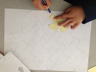 All they needed to do next was to draw around their shape onto a piece of A3 paper and then keep going to create their tessellations.