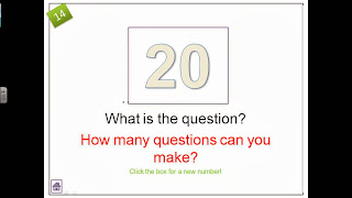Starter #14 - What is the question? I like these tasks, especially as you can create any question to which the answer is on the screen, for almost any topic too. Click the number in the centre of the screen to randomly generate another!