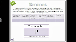 Starter #29 - bananas. Very good for literacy links. It is also very generic which allows it to be used as the starter in almost any lesson/subject. This could be adapted for all subjects, and even keep 'a mathematical word' to get a bit of numeracy in other subjects.