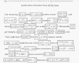 As you can see by the image to the left, this involves using a calculator to perform certain calculations to which the answers can be read by turning the calculator upside down in the 'old school' fashion where kids would type 5318008 to spell out 'boobies'!